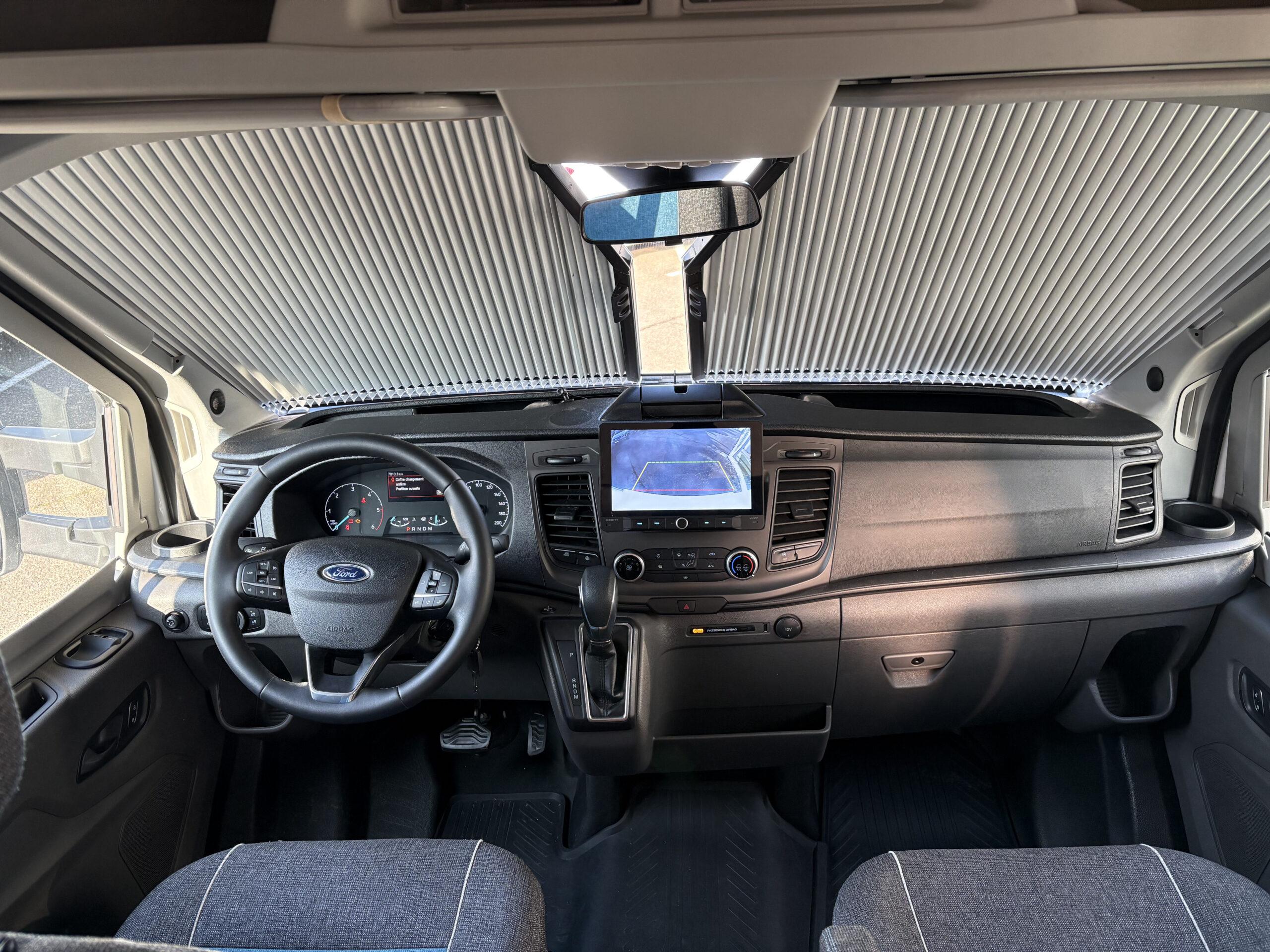 Porteur : Ford Transit 155 cv boite auto. Climatisation cabine, régulateur de vitesse, autoradio. Jantes 16 pouces alu , caméra de recul, store remis,  etc …