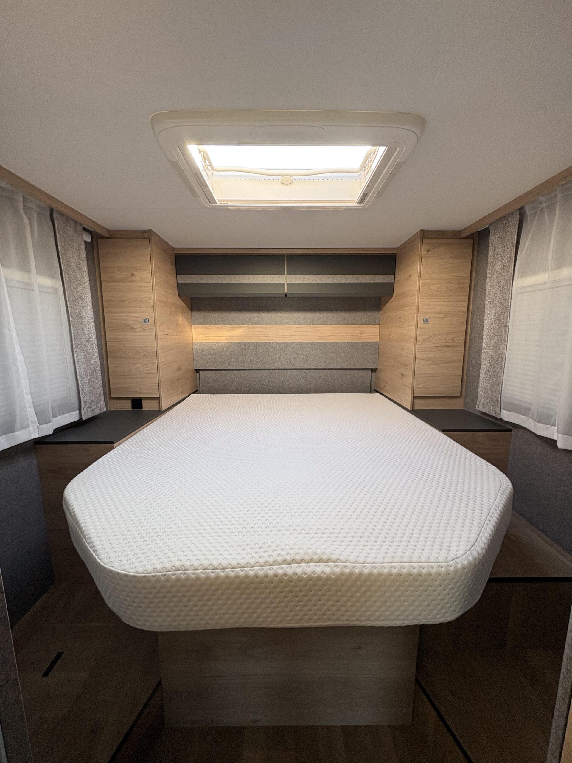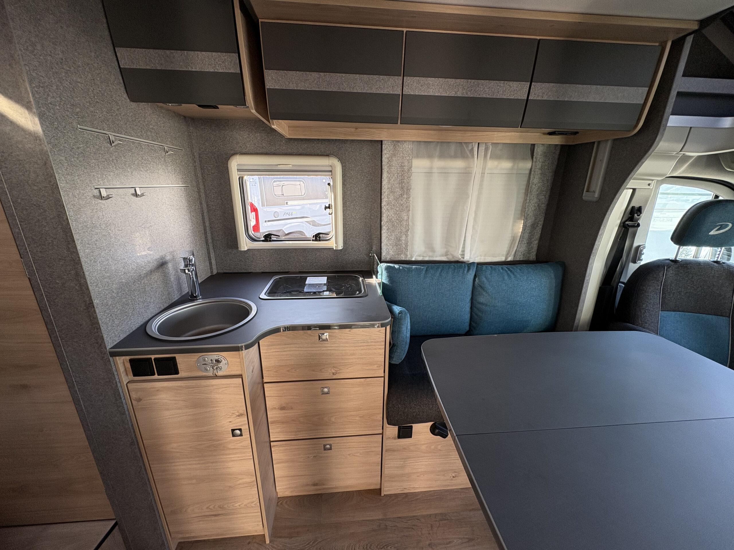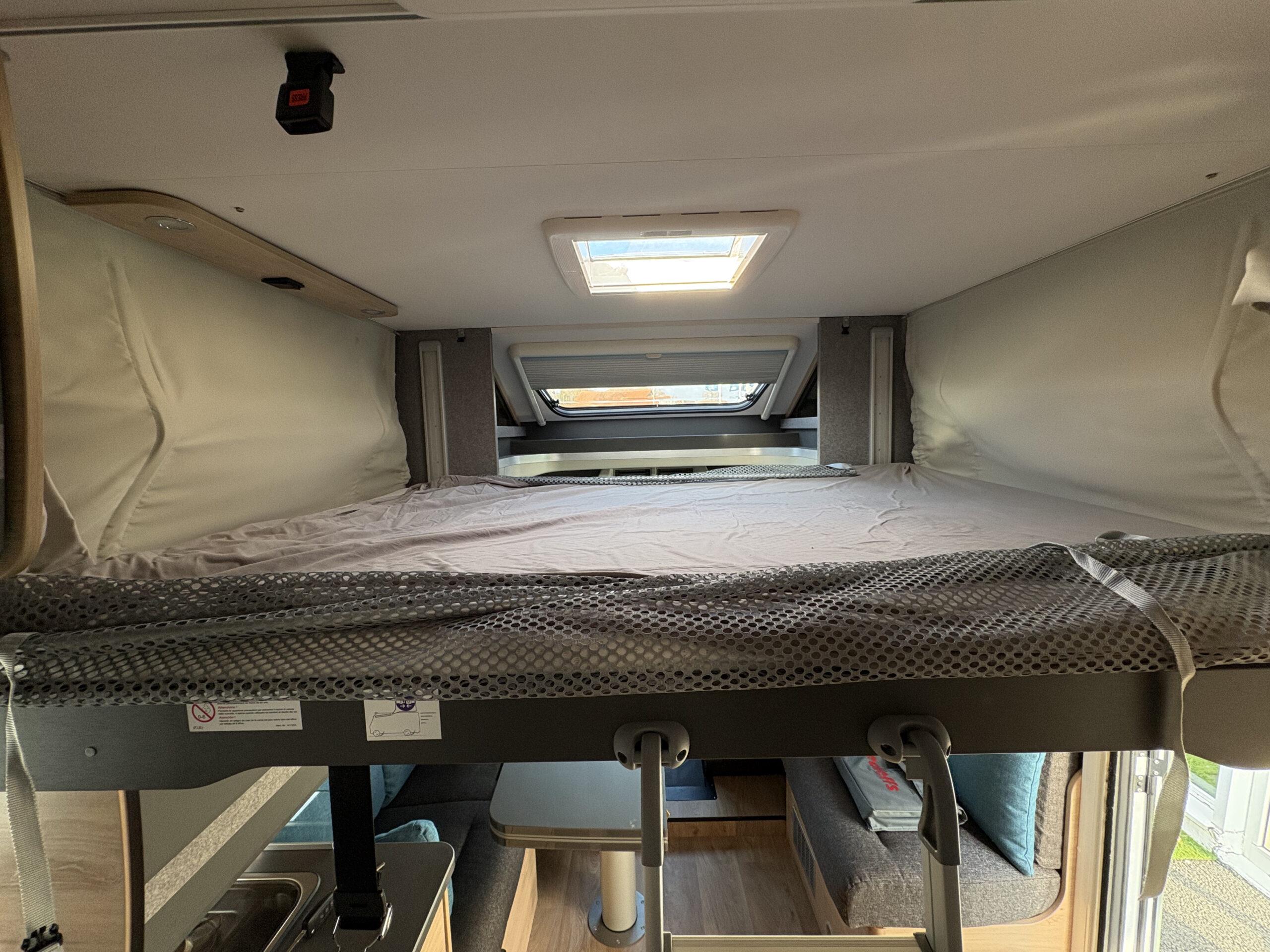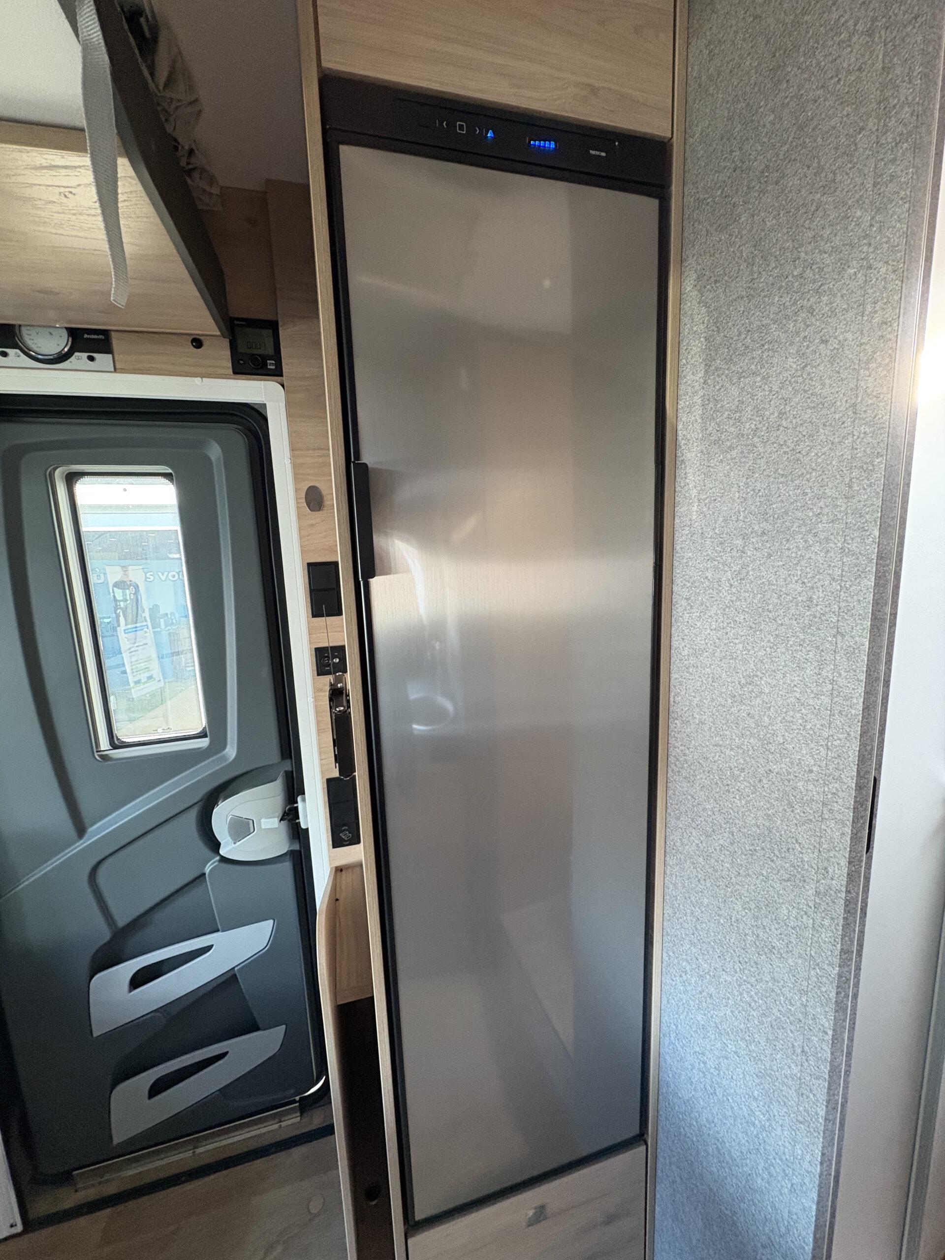 Cellule : Réfrigérateur 137L trimix auto 12V/230V et gaz. Eclairage extérieur. Moustiquaire porte cellule. 2 feux gaz piezzo. Chauffage gaz truma combi 6. Sdb douche séparée. Réservoir eaux propres 115l et réservoir eaux usées 90l.